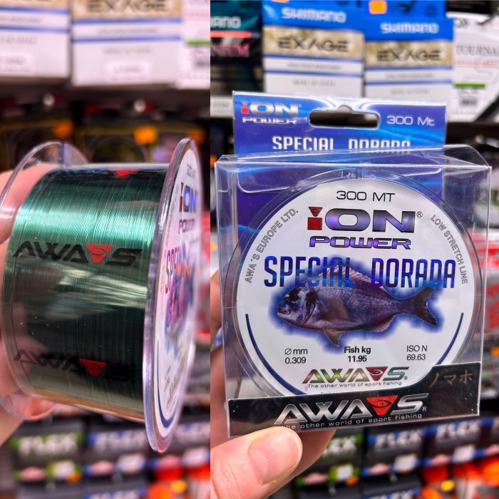 AWAS ION POWER SPECIAL DORADA en bobinas de 300 metros del 0,309mm. Color Verde transparente.