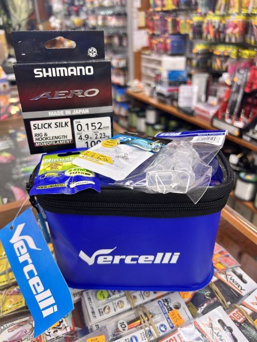 Caja de Ordenación Hart con 1 señuelo mini artesanal para la pesca del calamar de verano, cuando el chipirón pequeñito esta en auge, Julio y Agosto + los accesorios necesarios: