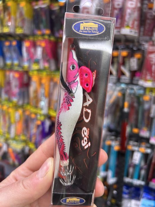 Caja de 10 señuelos para la sepia y calamar de la marca LINEAEFFE SERIE BAD EGI en tamaño 3.0 en color pinky Peso del señuelo 14 gramos y 9 cm de largo.