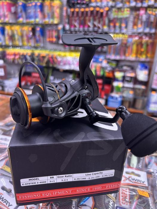 Carrete HART E-SYSTEM 3 en talla 4000 . Modelo en 3 + 1 Rodamientos de acero inoxidable. Dispone de ratio 5.2. Se recomienda nylon del 0,25mm / 200 metros. Peso 284 gramos. Potencia de freno 10 kgr.