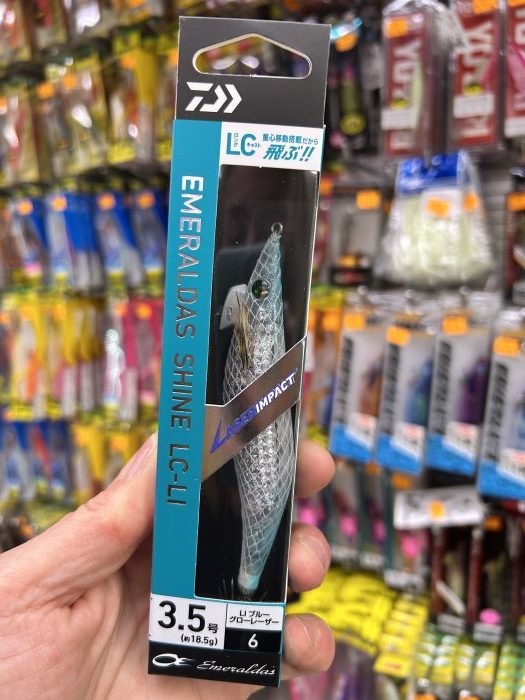 Egi DAIWA EMERALDAS SHINE LC-LI 3.5 en color #6 BLUE GLOW LASER y peso 18.5 gramos.